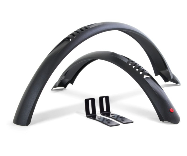 Clip-on insteek spatbordset ten behoeve van 24 inch MTB (kinder)fietsen. Geleverd inclusief montage materiaal. Ook geschikt voor 24 inch vouwfietsen.